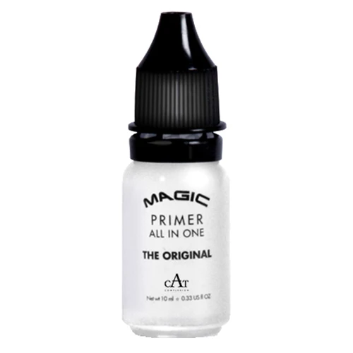 Just 1 drop of CAT’s Magic Primer All in One is all that is needed to intensify pigments and make any product waterproof, sweat resistant, and smudgeproof for ultra-long wear. A must have in an artist’s makeup kit, this primer lock makeup in place while also maintaining a natural and light finish. It can also be used to apply pearl powders, glitter, and more!