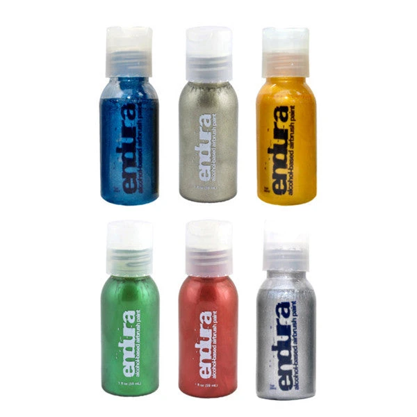 European Body Art Metallic Airbrush Liquids are an alcohol-based blend of airbrush tattoo ink and body f/x makeup, giving them the best coverage and wearability in the industry. Known for their intense colors and smooth, clog-free formula, EBA inks are ideal for temporary tattoos and art that requires a body paint that stays put. These colors come ready to use with no special mixing instructions!