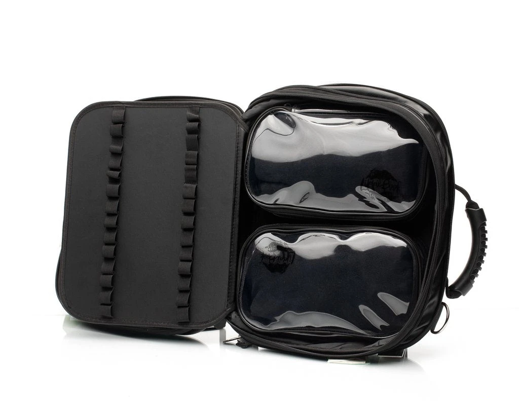Pro kit organizer for the professional makeup artist or real life makeup connoisseur. Made from a durable hard case shell and covered with vegan treated leather. Makeup Artist approved for a condensed, organized, and completely portable kit bag.
