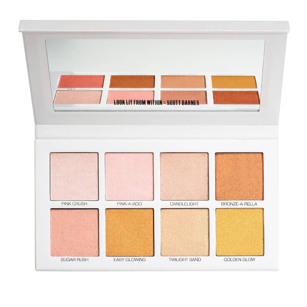The Scott Barnes Glowy and Showy Highlighter Palette is the ultimate highlighter palette. Carefully crafted pigments designed by Scott mix together so you can create your perfect highlighter tone without overdoing any one color. Glowy and Showy’s large pans put you in control of your highlights with specifically chosen hues of yellow and pink. Often highlighter palettes ignore the yellow and pink hue of peoples’ skin by using muted or random color options limiting users to two or three options to correctly hue shift.